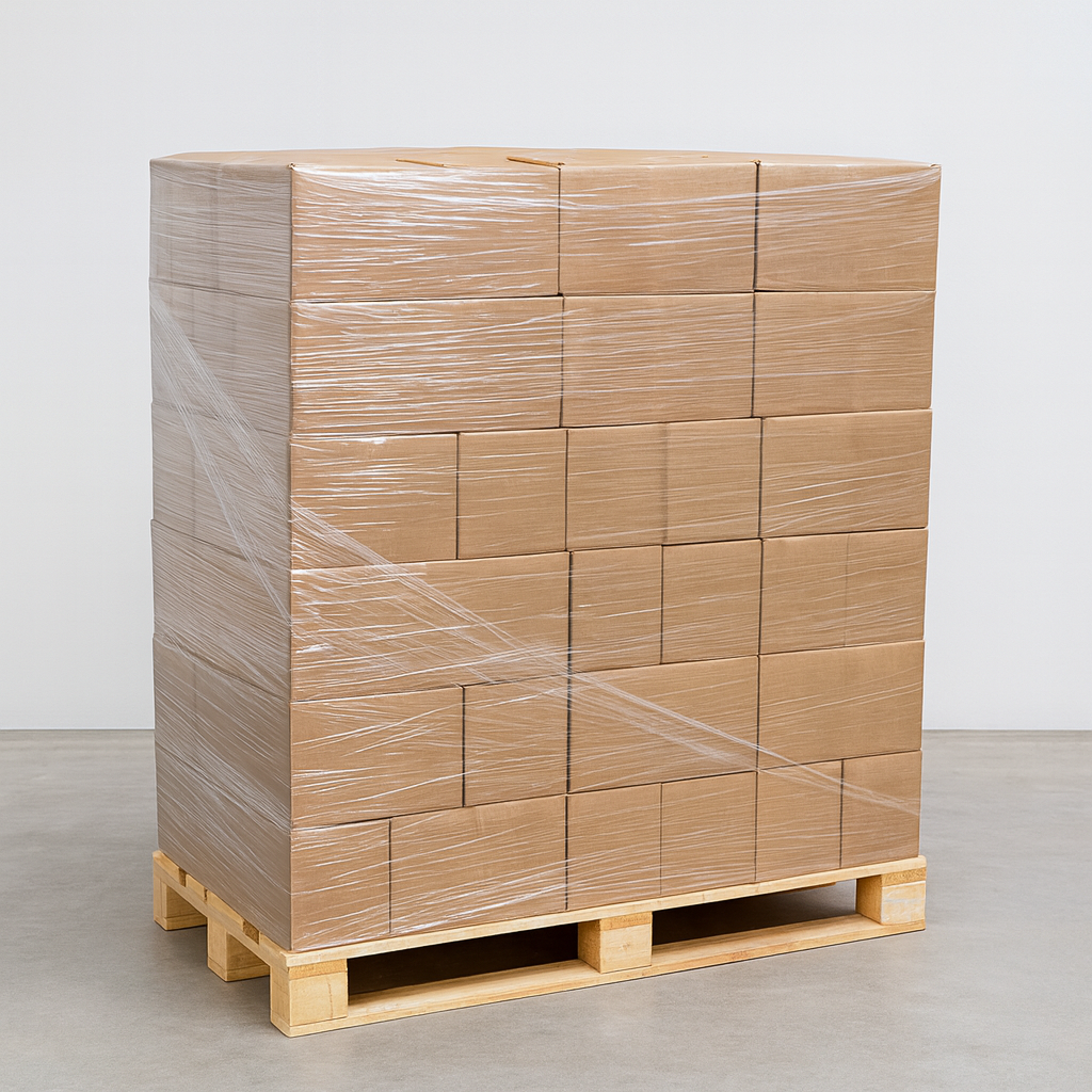 - Umverpackung Palette: Folie umwickelt, gebändert oder ungebändert